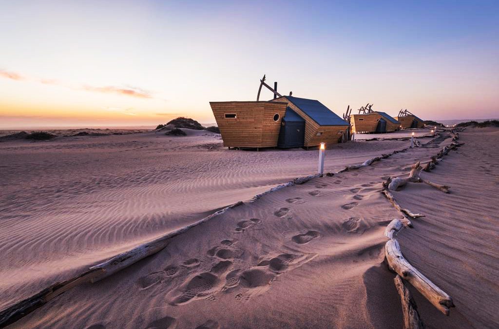 Hundreds of scattered remains along the Skeleton coast of Namibia inspired the design of these bungalow cabins located in Möwebaai. Each of these 10 shelters is characterized by an imposing horizontal window from which guests can enjoy a beautiful view of the sand dunes and even see, with a bit of luck, wild animals among which there could be hyenas and lions. Such a show!